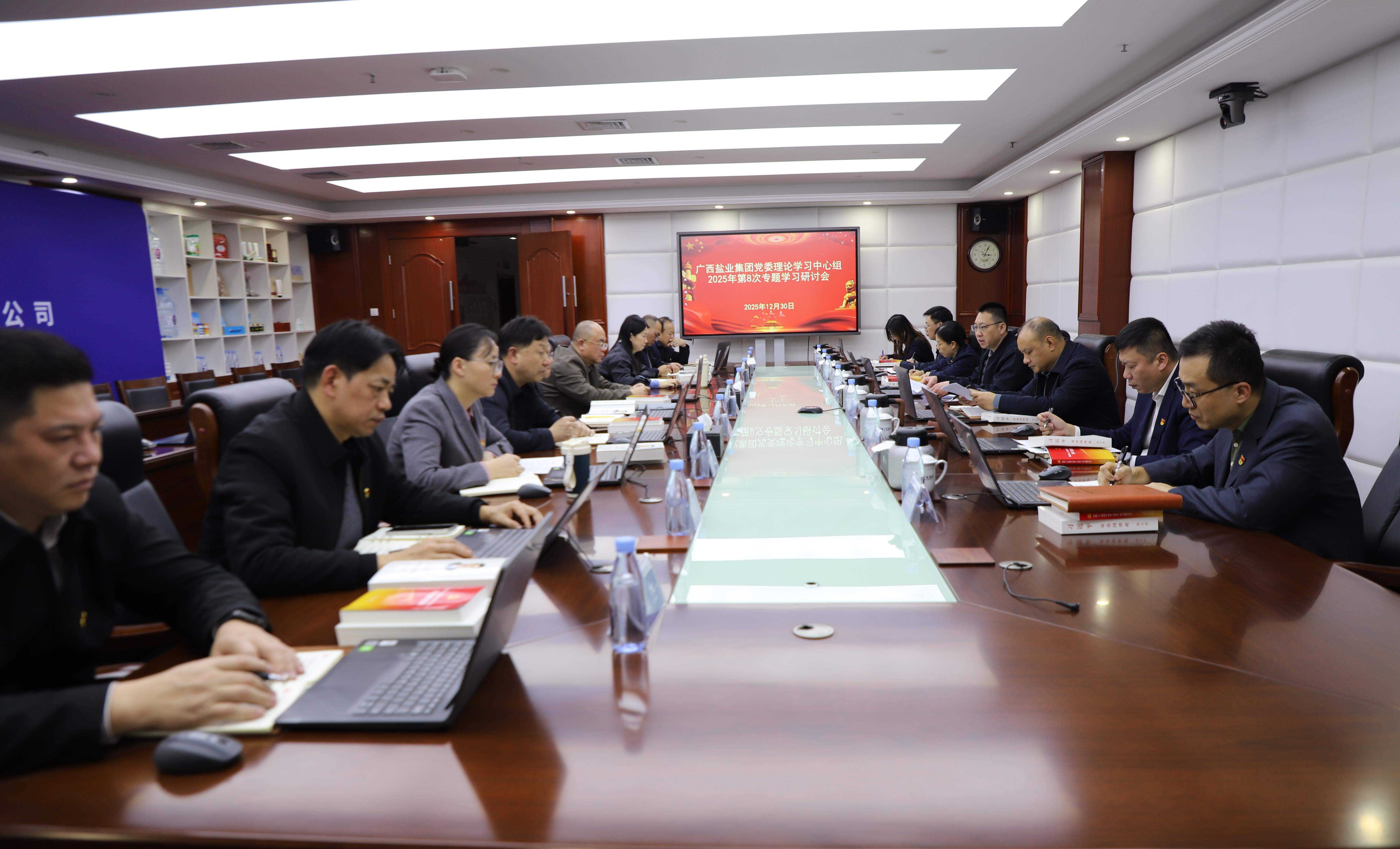 12月30日,廣西鹽業(yè)集團(tuán)黨委召開(kāi)理論學(xué)習(xí)中心組2025年第八次專題學(xué)習(xí)研討會(huì),深入學(xué)習(xí)貫徹習(xí)近平總書(shū)記近期重要講話和重要指示精神,傳達(dá)學(xué)習(xí)黨內(nèi)有關(guān)重要條例及自治區(qū)黨委相關(guān)會(huì)議精神,并就貫徹落實(shí)工作研究部署。集團(tuán)黨委書(shū)記、董事長(zhǎng)邱潮涌主持會(huì)議并分享學(xué)習(xí)體會(huì)。