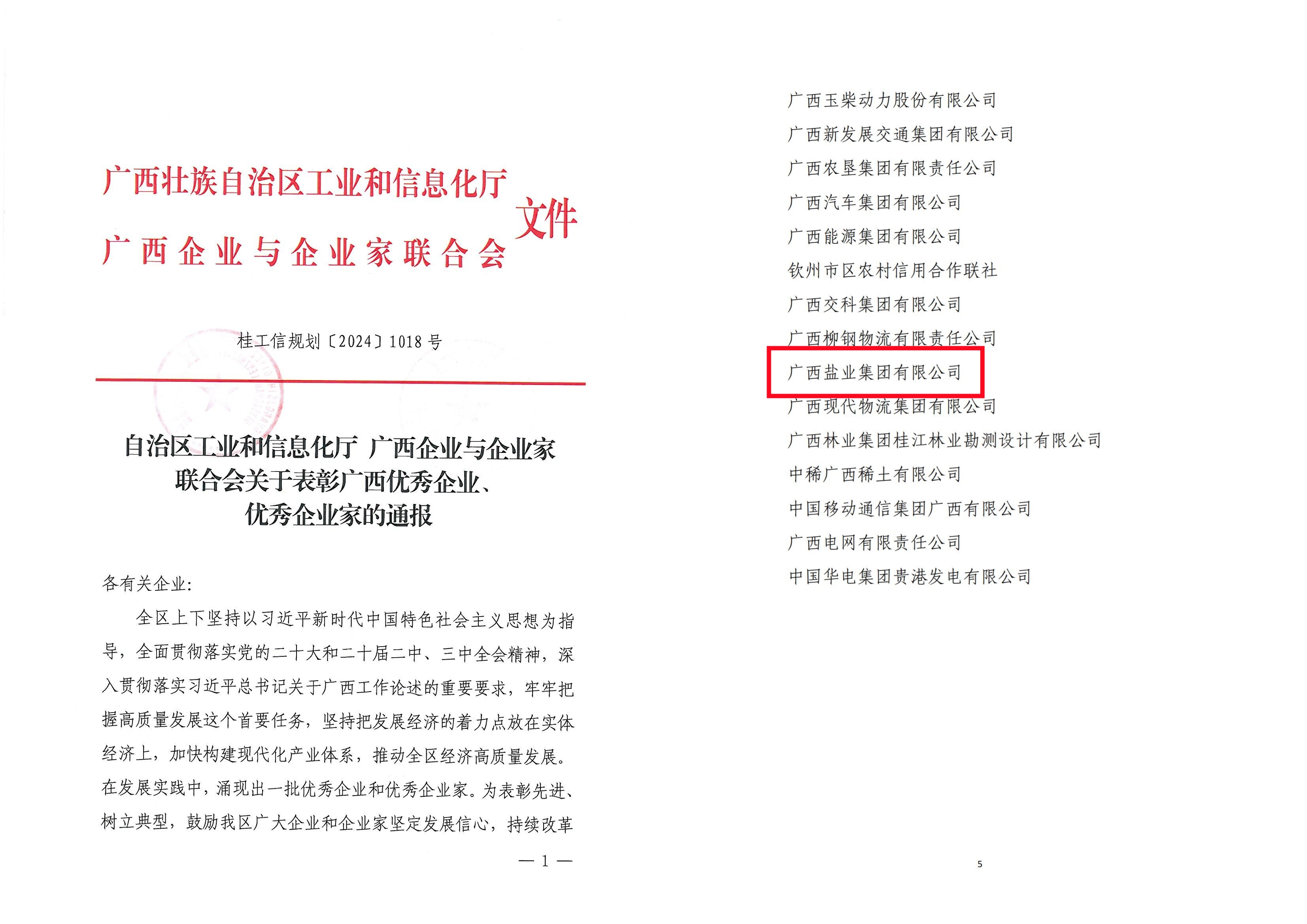 近日,自治區(qū)工業(yè)和信息化廳正式公布2024年廣西優(yōu)秀企業(yè)、優(yōu)秀企業(yè)家評比表彰結(jié)果。廣西鹽業(yè)集團(tuán)在眾多企業(yè)中脫穎而出,再次獲評“廣西優(yōu)秀企業(yè)”榮譽稱號。