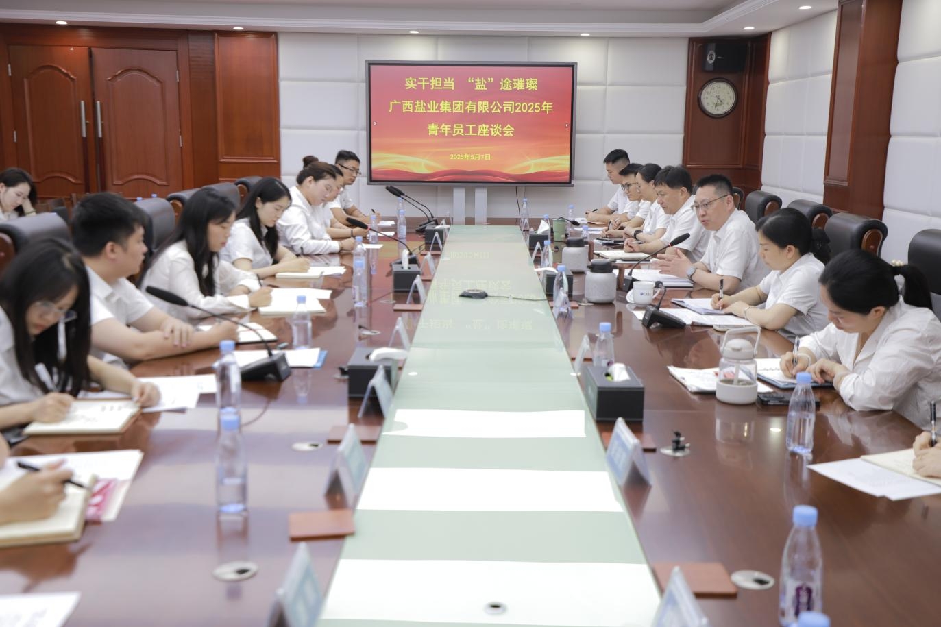 2025年作為“十四五”規(guī)劃的收官之年,同時也是中央黨的群團工作會議召開的第十個年頭。為深入學(xué)習(xí)貫徹習(xí)近平總書記關(guān)于青年工作的重要思想,牢固樹立“實干為要、創(chuàng)新為魂,用業(yè)績說話、讓人民評價”的工作導(dǎo)向,5月7日下午,廣西鹽業(yè)集團召開“實干擔(dān)當(dāng) ‘鹽’途璀璨”2025年青年員工座談會,傾聽桂鹽青年員工的心聲,共話青年與企業(yè)的協(xié)同成長之路。公司黨委書記、董事長邱潮涌出席會議并講話,黨委副書記、職工董事、工會主席于德昕主持會議。